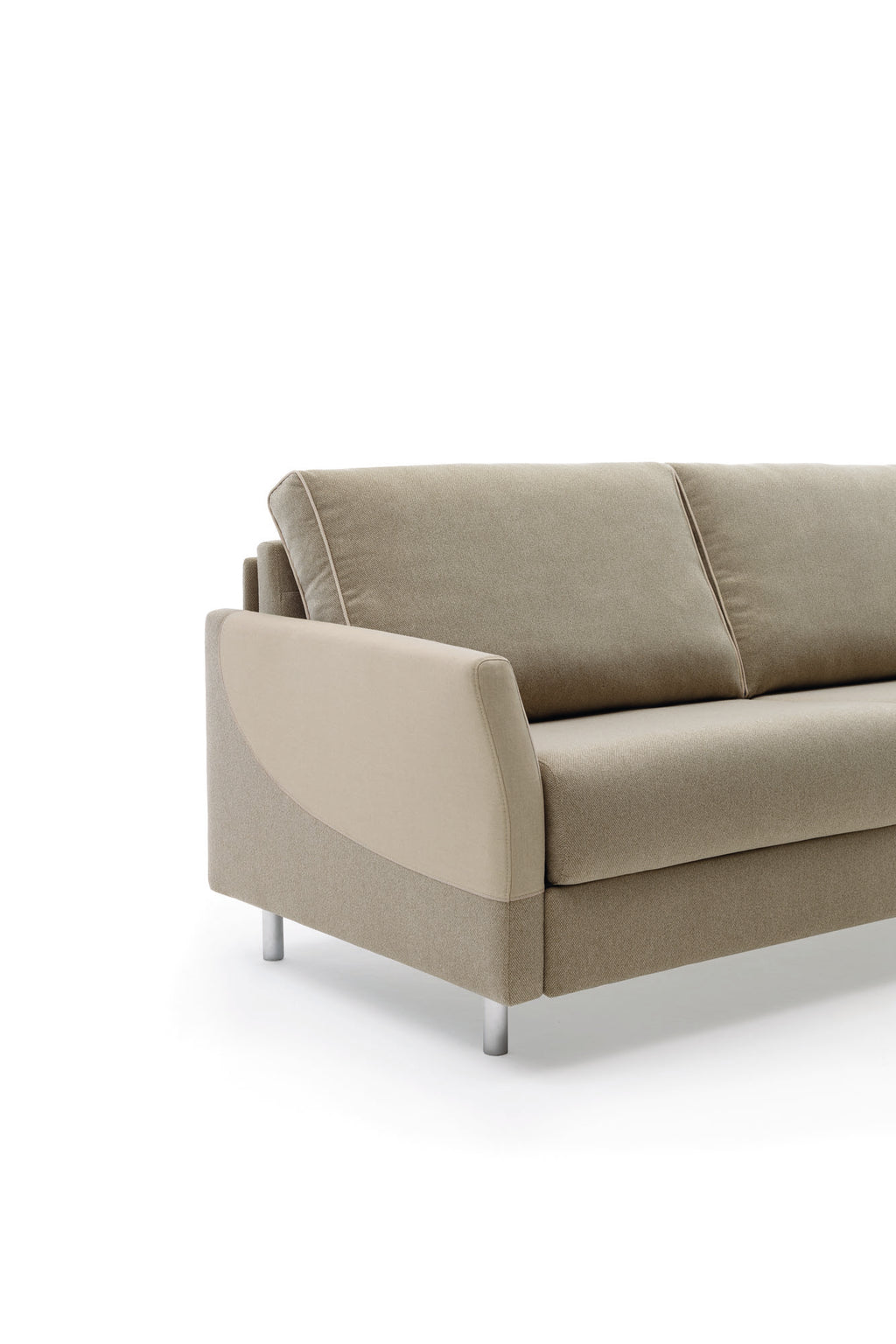 The dynamism that characterizes the contemporary is also fully visible in the living areas, requiring a fundamental attitude to both versatility and multi-functionality. The day bed, place of rest and cornerstone of everyday family life, can be transformed into a comfortable bed for the night when required, without disturbing the general home dynamics. These sofas are characterised by a unique identity and structural outlook, which is emphasised by the possibility of customising armrests and by easy-to-use opening mechanisms. All sofas feature ergonomic beds, which are equipped with convenient space-saving storage solutions, in order to smartly abide by the demands of modern housing.